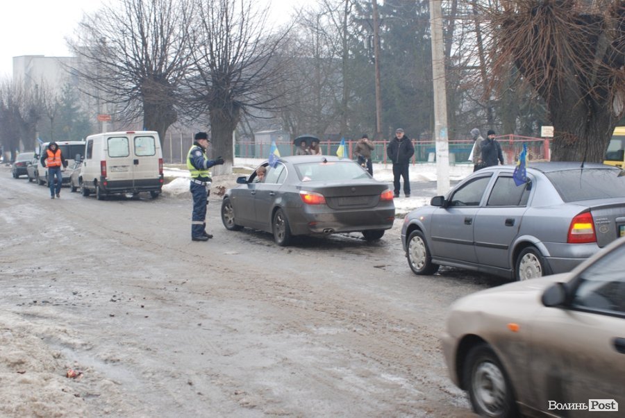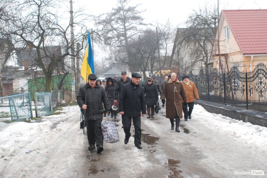 Стартували громадські активісти з Луцька приблизно о 9:30. Перед початком акції вони заспівали Гімн України, а народний депутат Євген Мельник презентував їм прапор України, який Майдану передали українці Польщі.