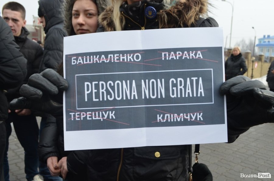 Так, персонами нон ґрата як основних «репресантів» попрохали визнати нового голову Волинської ОДА Олександра Башкаленка, екс-губернатора Волині Бориса Клімчука, прокурора Волині Андрія Параку та начальника УМВС Волині Олександра Терещука.