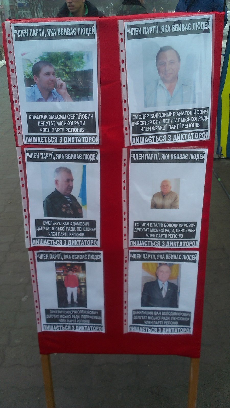 «Рішення про створення «дошки ганьби» було прийнято на одному із недільних віч, оскільки жителі міста хотіли знати в обличчя в обличчя кожного депутата, який є членом Партії регіонів і не вийшов з неї, а вирішив розділити усі злочинні дії влади і залишитися до кінця з режимом Януковича», - додають у Свободі.