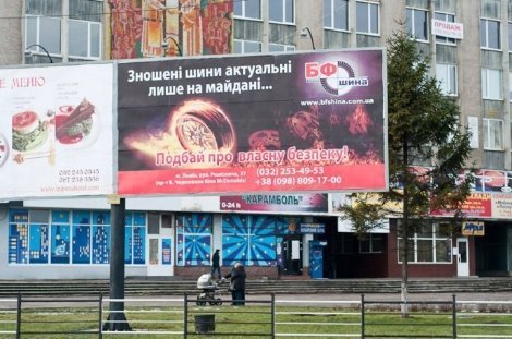 Так, одна з фірм, що торгує у Львові автомобільними шинами, розмістила на проспекті Чорновола рекламний білборд з написом: «Зношені шини актуальні тільки на Майдані». Водночас, реклама на біл-бордах використовується і для озвучення своїх політичних та громадських позицій. Так, учасники спільноти «Економічний бойкот Партії регіонів» розмістили поблизу ринку «Південний» у Львові, що належить голові Львівської обласної організації Партії регіонів Петру Писарчуку, два біл-борди з написом білими буквами на синьому фоні: «Є така партія, яка вбиває людей».
