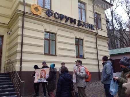 У Львові близько 20 активістів пікетували «Брокбізнесбанк», «Надра банк», «ПУМБ», «Імексбанк», «ТАСкомбанк» та «Форум банк» у Львові, які контролюють члени Партії регіонів.