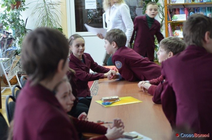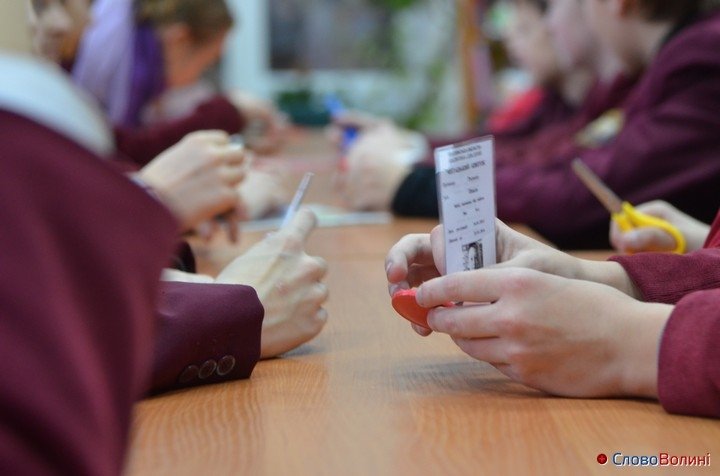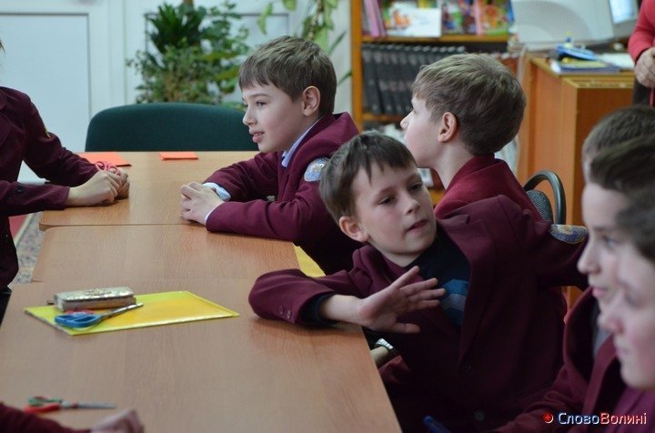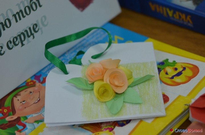 Потім учням роздали червоний папір та ножиці й усі радо взялися виконувати вказівки майстрині. Дітям також допомагали працівники бібліотеки.