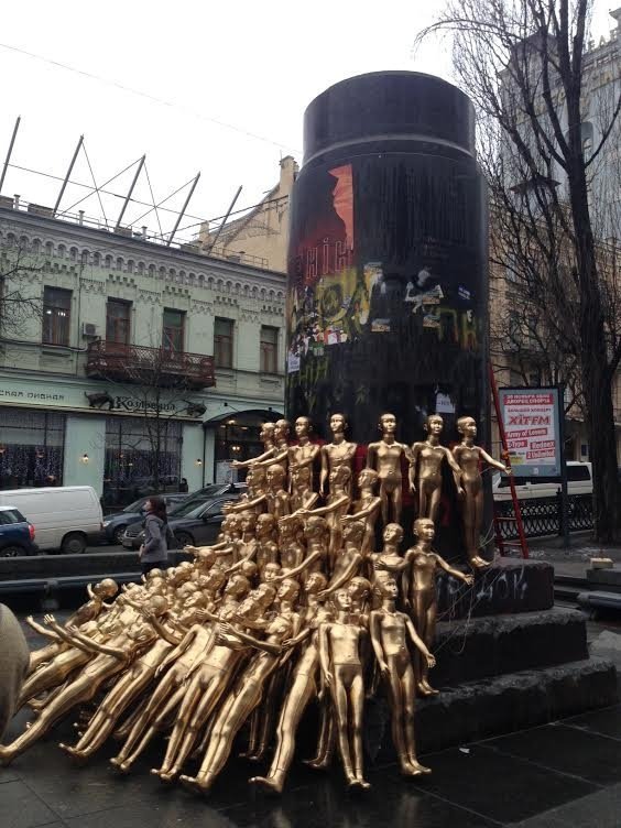 У Києві до постаменту на Бесарабці, на якому раніше стояв Ленін, принесли 100 золотих дітей.