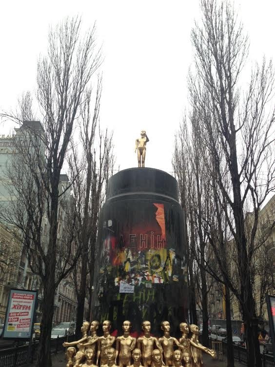 У Києві «діти» захопили знесений пам’ятник Леніну. ФОТО