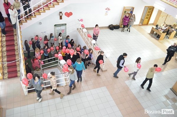 У Луцьку студенти влаштували флешмоб до Дня Валентина. ФОТО