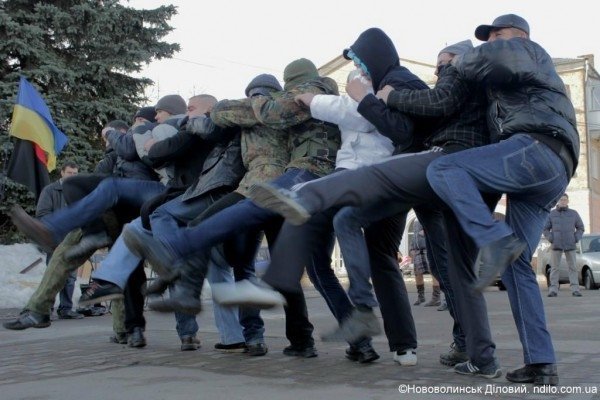 Під оплески натовпу розповідав про палку політичну боротьбу свободівець Мельник, а поряд заробляли свої перші синці активісти "Правого сектору".