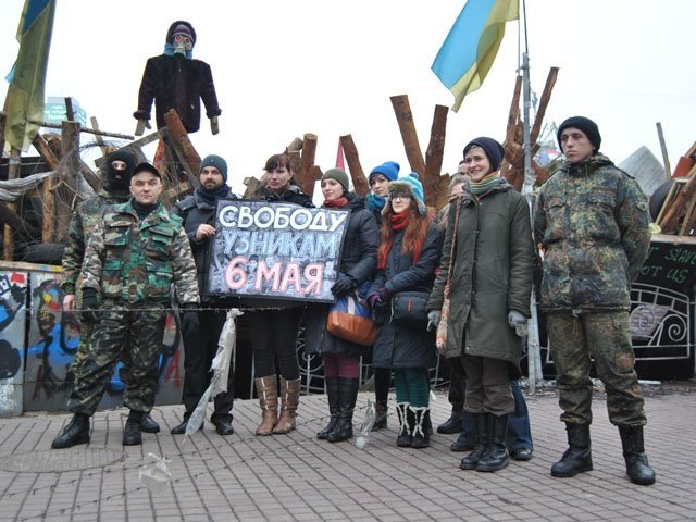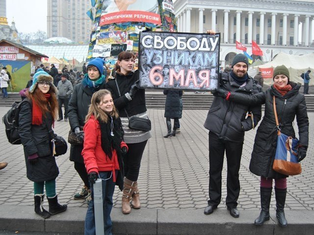 У руках українських акивістів Майдану був плакат із написом "Свободу в'язням 6 травня".