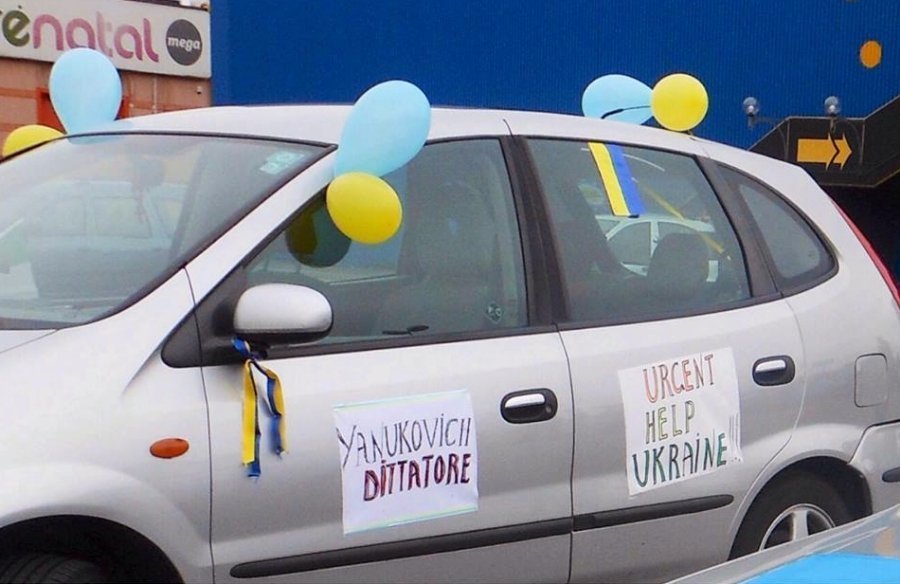 Українці в Італії також провели Автомайдан у місті Трівенето. На авто були надписи “Янукович – Диктатор” та заклики до італійців “Допоможіть Україні!”.
