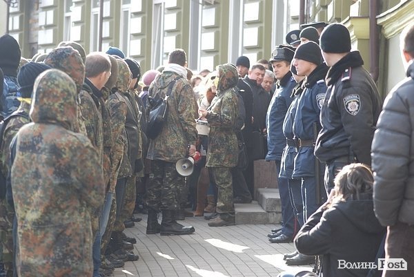 У Луцьку під стінами прокуратури області зібралися кілька десятків представників "Правого сектору", щоб озвучити свої вимоги.