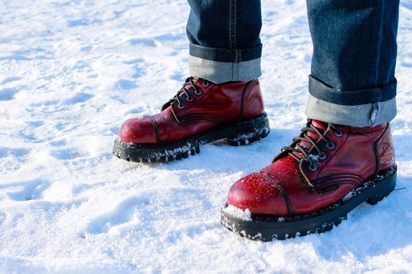 Джинси, як бачимо, класичні та гарно закочені: по пропорціях – модно. Взуття ж масивне та стильне, однак випадає з образу, бо нічим не підкріплене. Якби, наприклад, був червоний шарф, то образ був би просто ідеальним. Адже шарф би по кольоровій гамі доповнював взуття і навпаки.