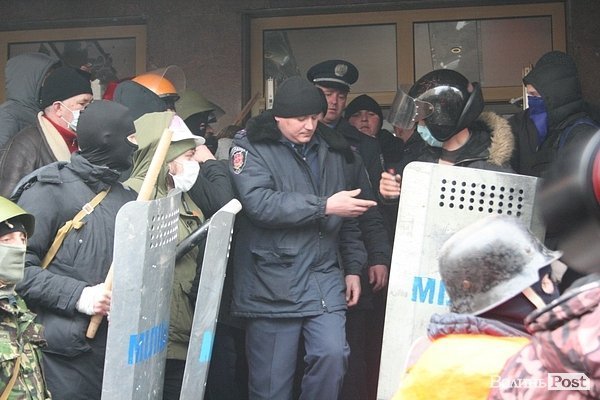 У Луцьку мітингувальники взяли штурмом управління УМВС у Волинській області.