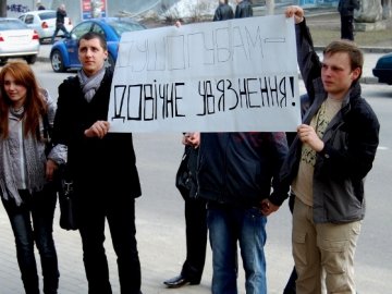 Під стінами волинської прокуратури в центрі Луцька 19 березня зібралось понад 60 людей, котрі тримали у руках плакати з вимогами покарати хлопців, які жорстоко познущалися з 18-річної дівчини. Про організацію акції небайдужі напередодні домовились у мережі Facebook.