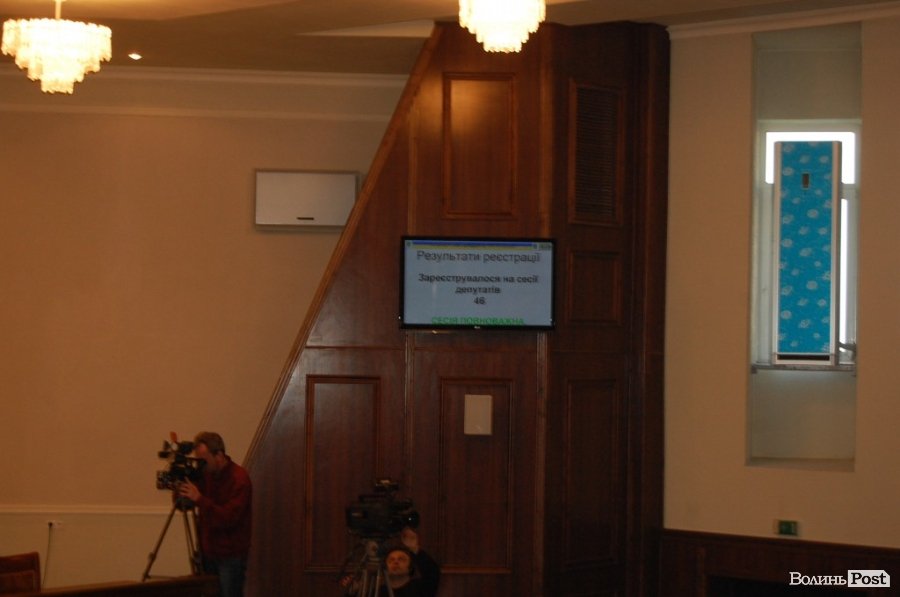 На сесію Волинської облради прийшло 46 депутатів, що стало достатньо для початку роботи сесії, яку не можуть завершити вже декілька місяців.