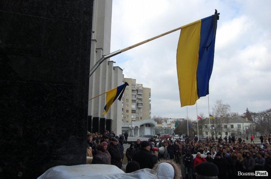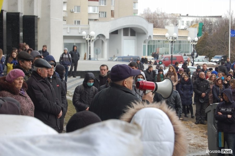 Активісти зібралися на мітинг перед Волинською облрадою на Київському майдані.