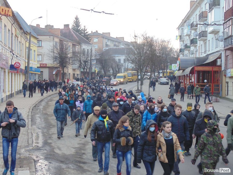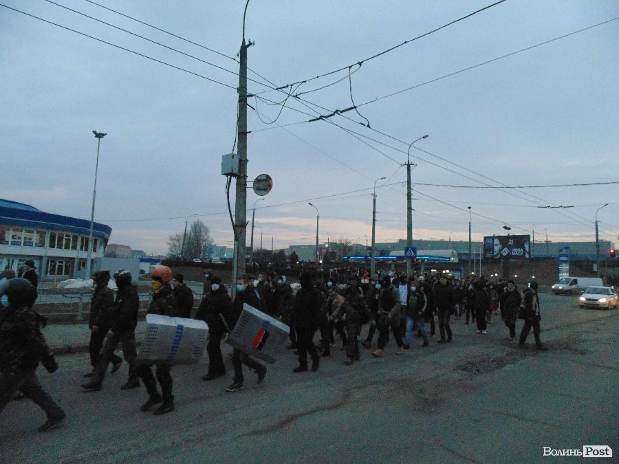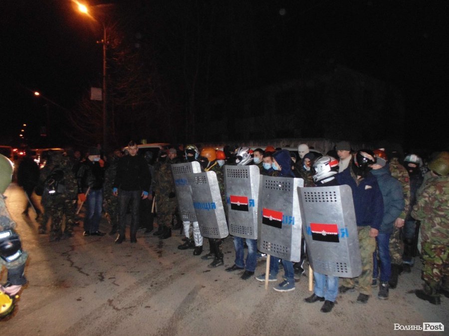 Загони Самооборони Майдану та Правого сектору до цього пройшлися ходою від центру Луцька до військової бази. По дорозі до них приєднувалися лучани. Вже біля бази в колоні перебувала приблизно 1000 активістів.