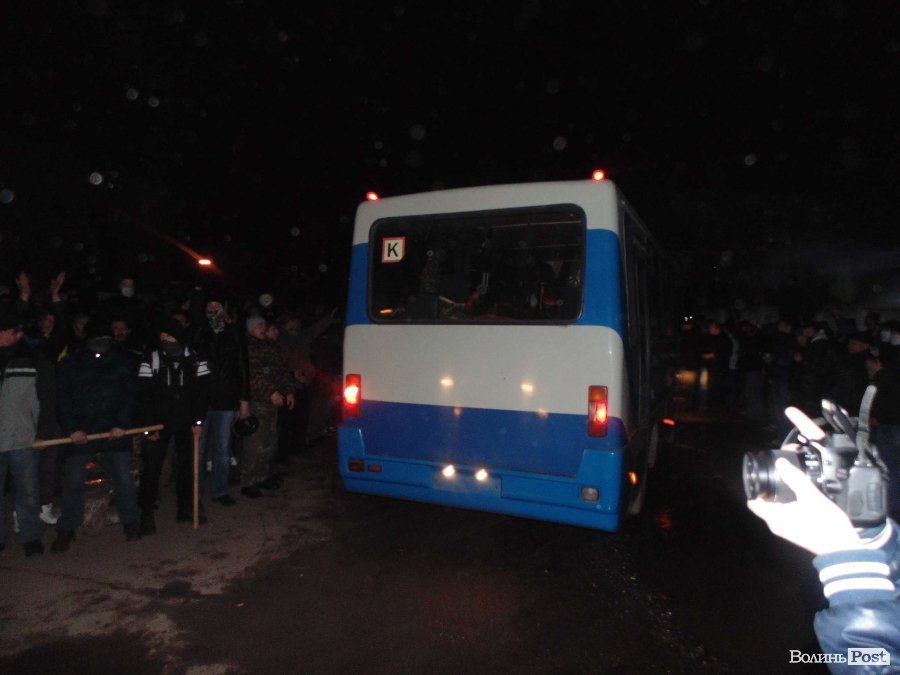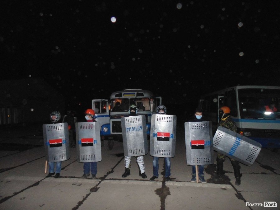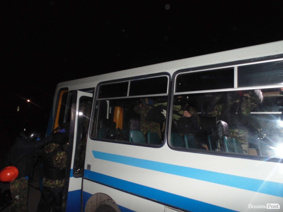 Амуніцію завантажили у два автобуси, «орендованих» активістами на базі, та вивезли на Театральний майдан Луцька.