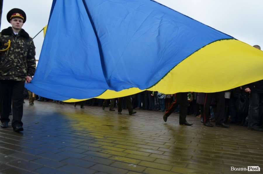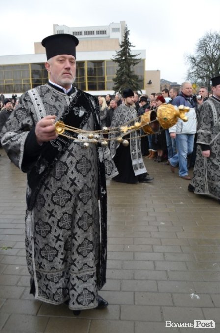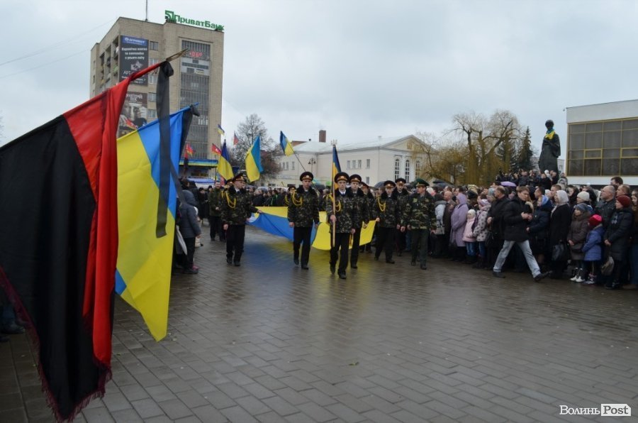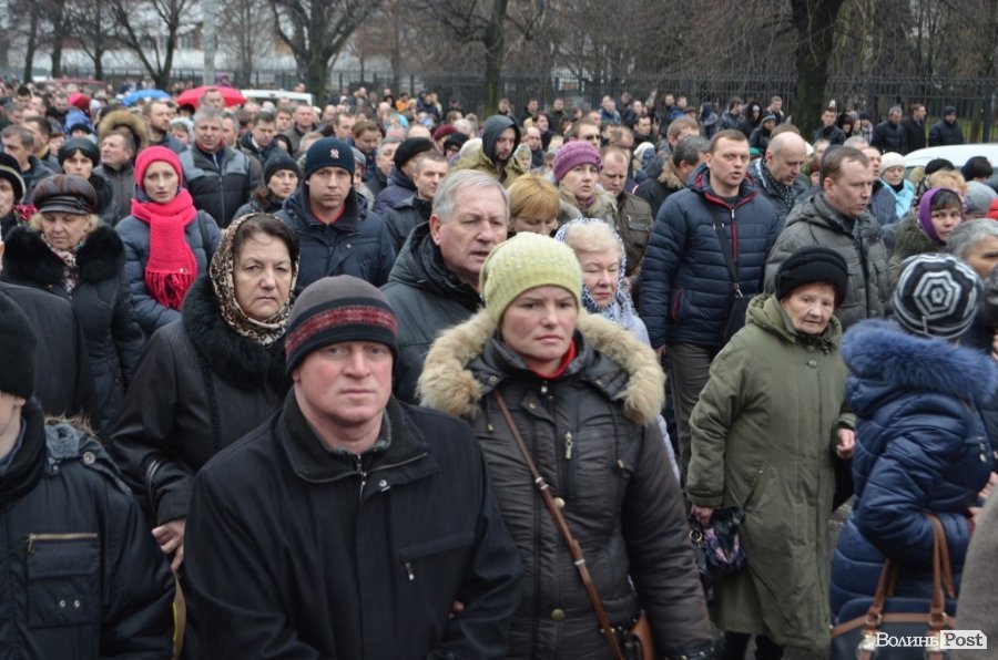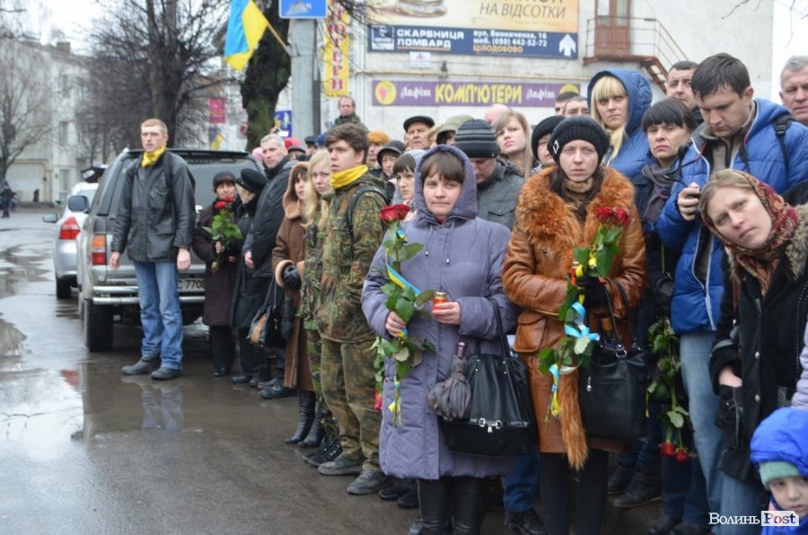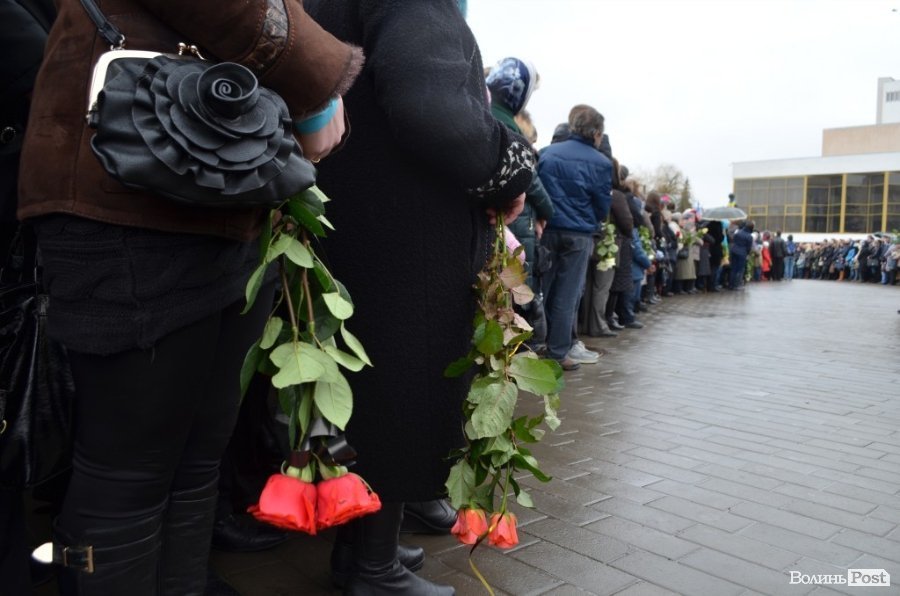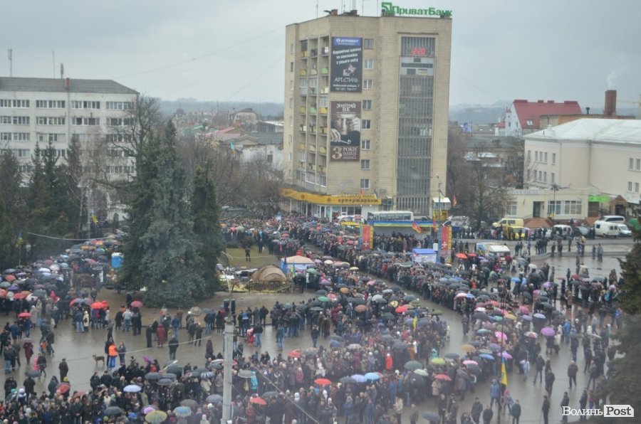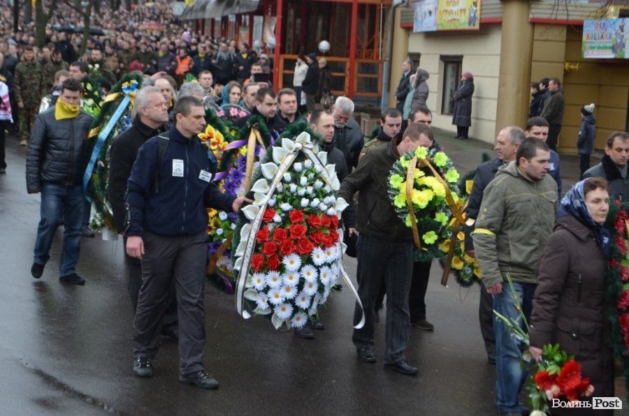 Хода розпочалася на Театральному майдані після відспівування загиблого майданівця у Свято-Троїцькому кафедральному соборі у Луцьку приблизно о 12:30 у неділю, 23 лютого.