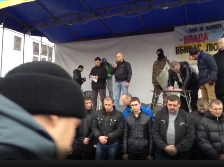 У Луцьку бійцям спецпідрозділу "Беркут" влаштували привселюдний допит.