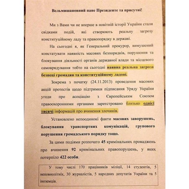 У документах колишній високопоставлений чиновник Пшонка просив в екс-президента Віктора Януковича ввести надзвичайний стан в Україні.