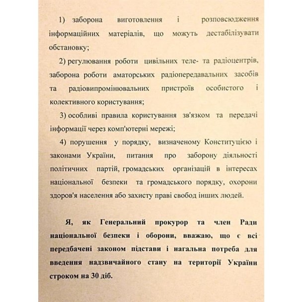 Знайдені документи про введення надзвичайного стану
