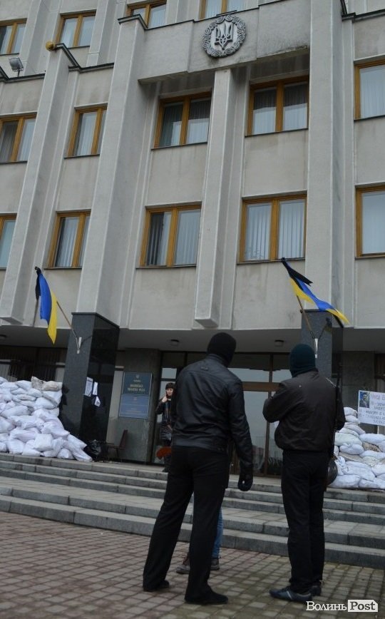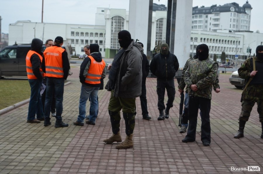 Волинську облраду «охороняють» люди з рушницями. ФОТО