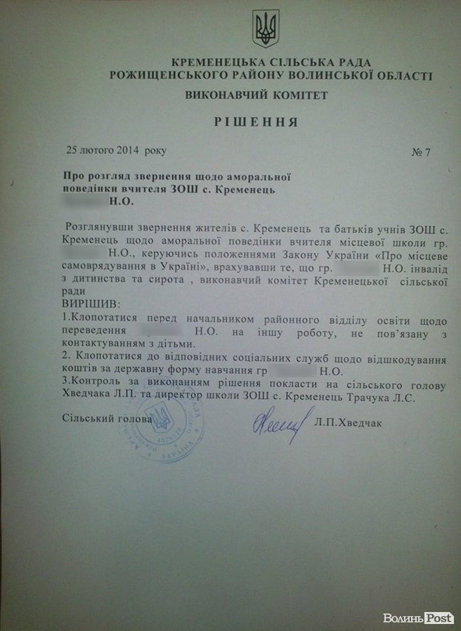 Підтримки у вирішенні питання, мовляв, намагалася знайти у директора Кременецької школи Леоніда Трачука. Утім, успіхом це не увінчалося.