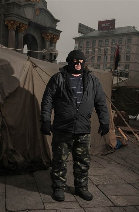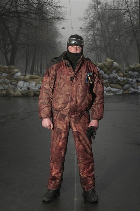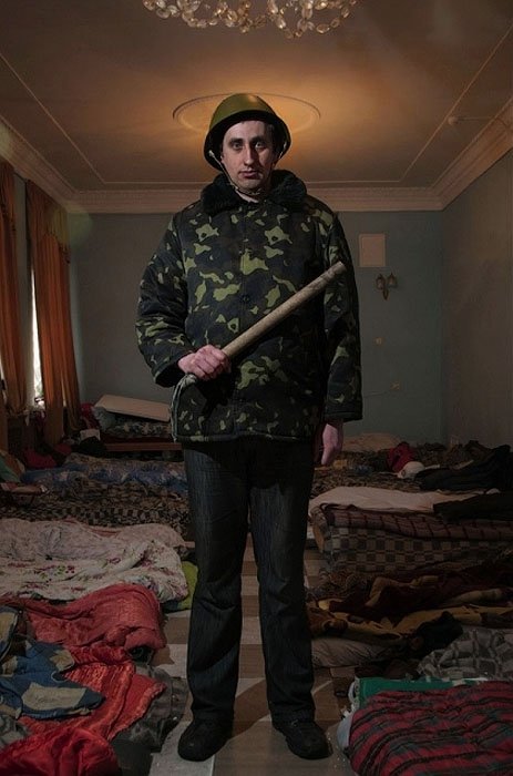 Цей чоловік побачив по телевізору сюжети про протести і вирішив відправитися до Києва, щоб взяти в них участь. До цього він працював будівельником у Львівській області, а тепер патрулює київський Майдан.