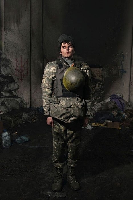 Цей юнак патрулював передову під час заворушень на вулиці Грушевського, де демонстранти звели барикади з шин, цегли і снігу. Він каже, що для демонстрантів єдиний вихід з цієї ситуації - перемога.