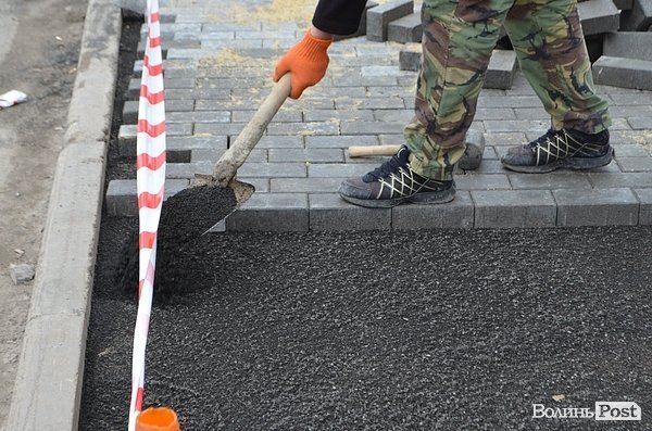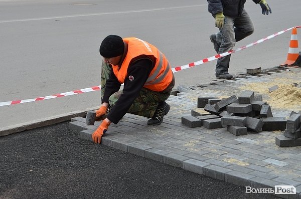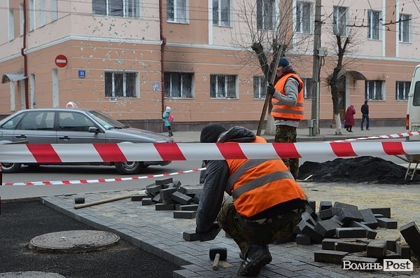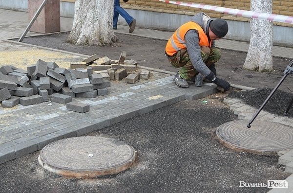 У Луцьку триває відновлення бруківки біля міліції. ФОТО