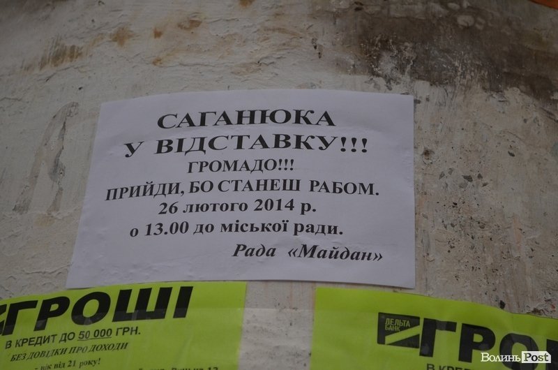 Як повідомили учасники протесту, у місті клеїли оголошення про проведення мітингу, на якому будуть вимагати відставки міського голови. Втім, як виявилося, самі організатори заходу не прийшли, а серед кількох сотень чоловік виявилися як прихильники Петра Саганюка, так і його противники.