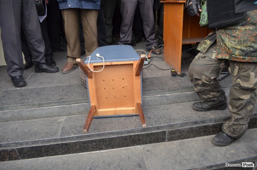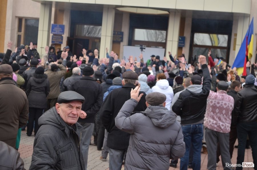 Керівництво ради сесію скликало, щоправда, у вигляді мітингу. Депутати засідали прямо на вулиці перед входом у раду.