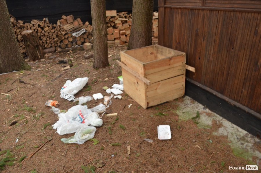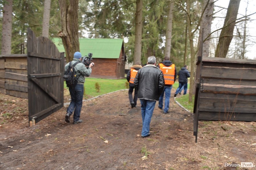 Активісти відчинили ворота й пішли ознайомлюватися із невідомим будиночком посеред лісу. Судячи із свіжості деревини, з якої зроблена частина будови на подвір’ї, можна сказати, що все це було збудоване тут нещодавно. Це підтвердив родич єгеря Вишинського, який сказав, що будиночок повстав на землі минулоріч. До того на тій території була лише пасіка.