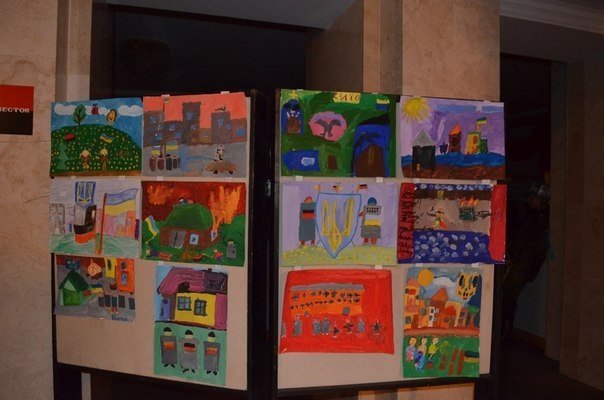 У штабі Правого сектору Волині, що знаходиться в Палаці Культури Луцька, розташована виставка дитячих малюнків про революцію.