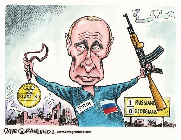 На малюнках зображають президента Росії Володимира Путіна, звинувачуючи його в спробі розв'язати війну з Україною.