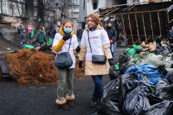 Відомі телевізійники прибирали центр Києва разом з протестувальниками.