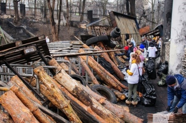 На прибирання біля входу до стадіону «Динамо» пішло трохи більше трьох годин. Побачивши активність біля стадіонної арки, сюди прямували звичайні кияни – вони запитували, як можна долучитися до загального прибирання Майдану.