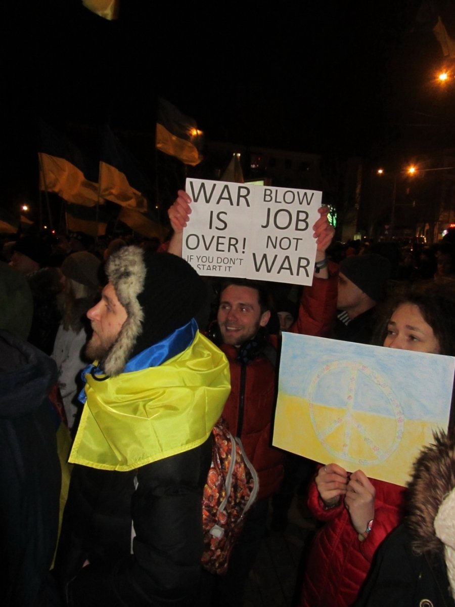 Серед учасників антивоєнної акції було багато студентів. Були і донецькі ультрас.