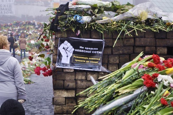 На барикадах та на вулиці Інститутській лежить багато квітів. Ними навіть викликали словосполучення "Героям слава!" та Герб України - тризуб.