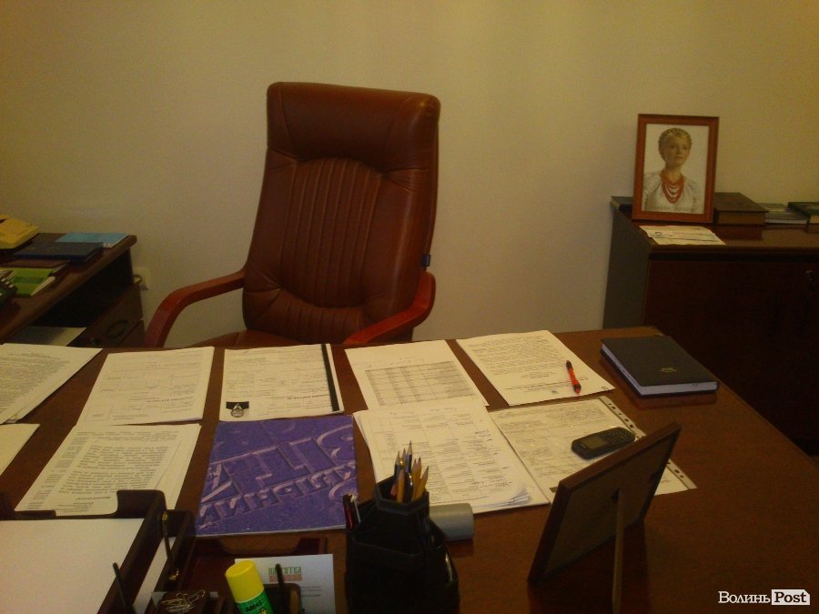 У кабінеті, де працює голова Волинської ОДА Григорій Пустовіт, знайшлося місце для портрета лідера ВО «Батьківщина» Юлії Тимошенко.