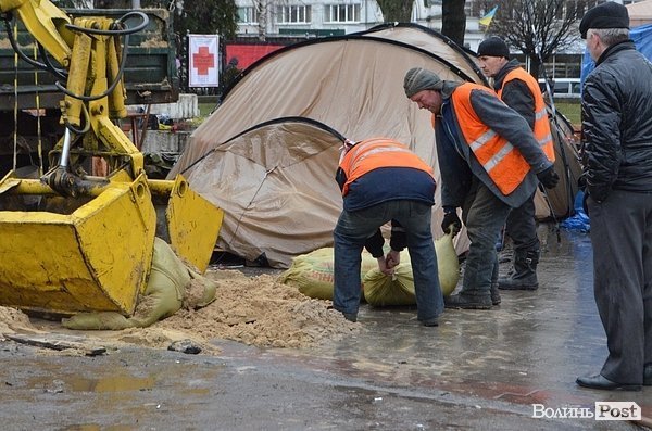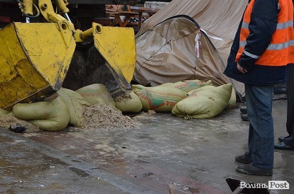 6 березня звідси вивезли піддони та шини, а 7-го приїхала вантажівка за мішками піском.