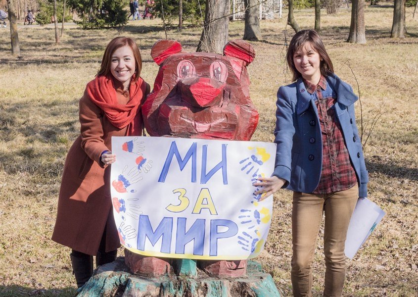 Плакати для учасників флешмобу демонстрували громадянську позицію, зокрема такими написами «Ми за мир», «Я не хочу війни» та «Ми непереможна нація».