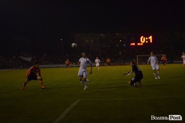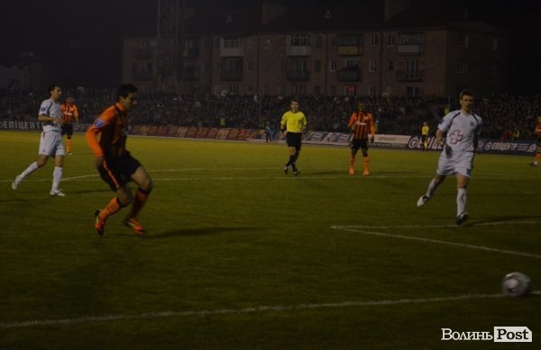 Потому Шевчук увійшов у штрафний майданчик, де його сфолив волинянин Євген Пічкур. На 88-й хвилині гри Адріано впевненно реалізував 11-метровий.