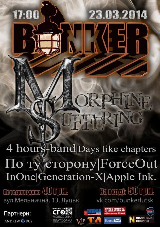 У вечірці візьмуть участь гурти: "Morphine suffering", "4hours-band", "Days Like Chapters", "По Ту Сторону", "ForceOut", "InOne", "Generation-X", "APPLE INK".