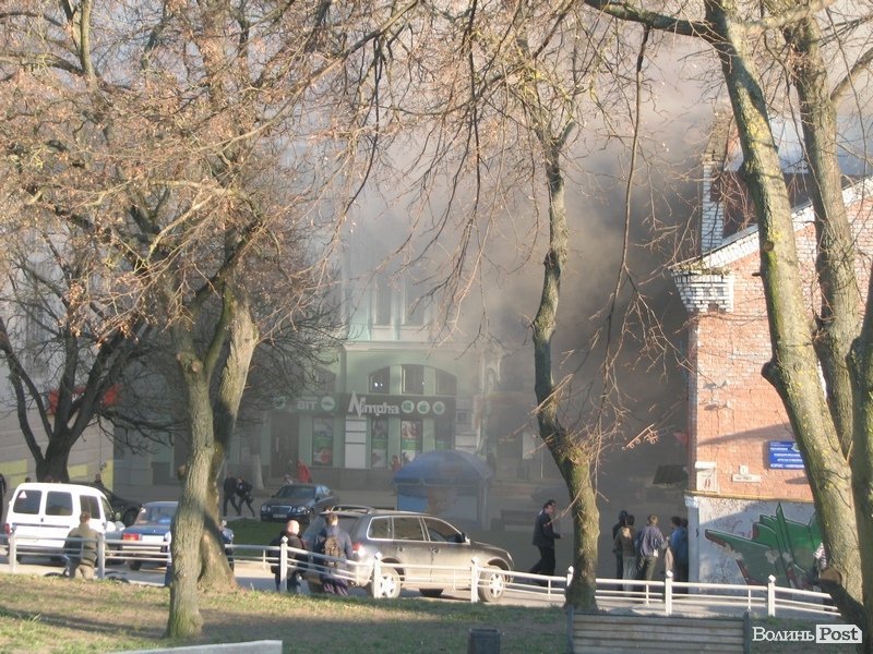 У центрі Луцька на вулиці Лесі Українки пожежа в триповерховому будинку.