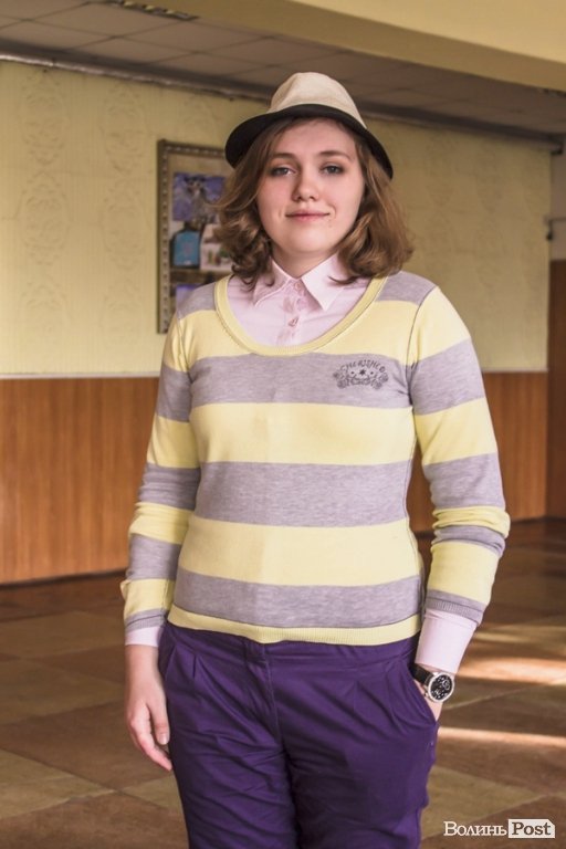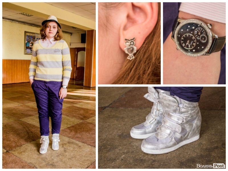 «Люблю одягатись яскраво і цим показувати, що я індивідуальність. Навіть коли я одягаюсь у школу, намагаюсь не обирати стандартні «піджачок, штани або спідницю і сорочку». Найулюбленіший мій аксесуар – годинник, який привезла мені тітка з Росії. Ношу його кожен день», - ділиться школярка.