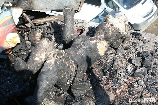 Очевидно, скульптура належала якомусь католицькому храмові Волині. Вона дуже обгоріла і одну руку втратила.