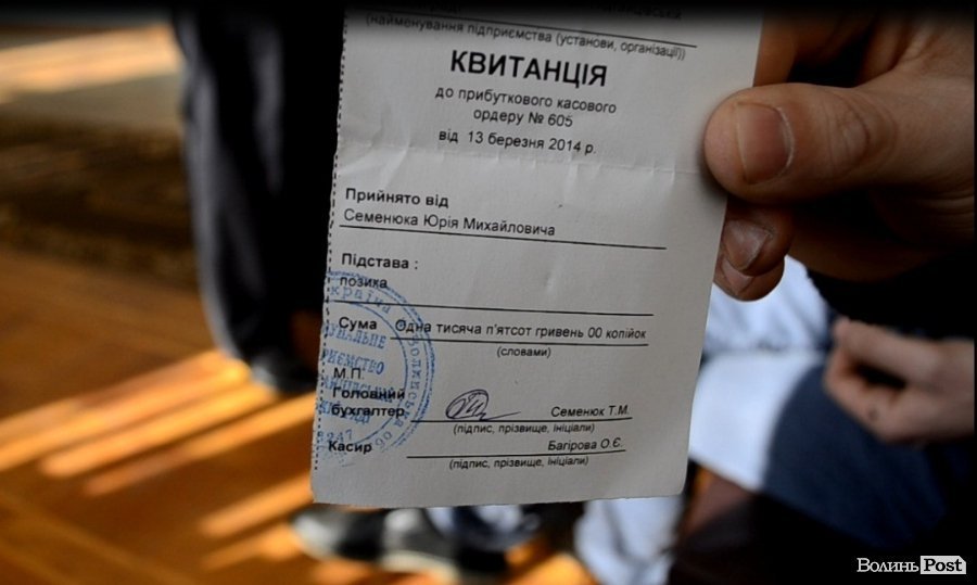 Семенюк каже, що за землю виручив 1,5 тисячі гривень, які потрапили до бюджету села, що засвідчує квитанція.