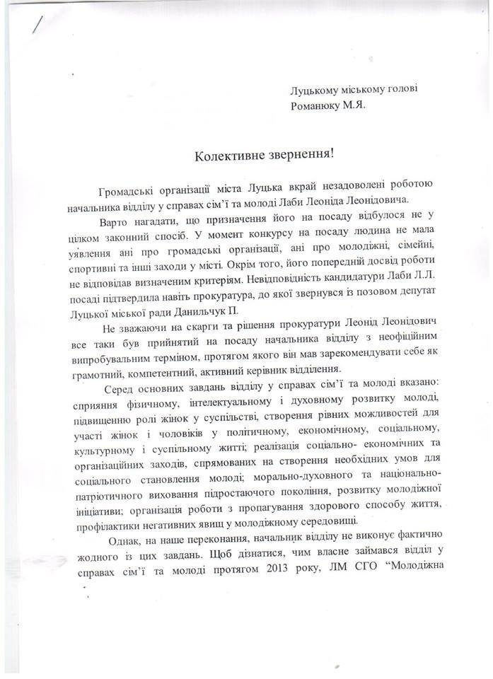 Начальник відділу сім'ї та молоді Луцької міської ради Леонід Лаба проігнорував запрошення на зустріч з громадськими організаціями, які опікуються молоддю.