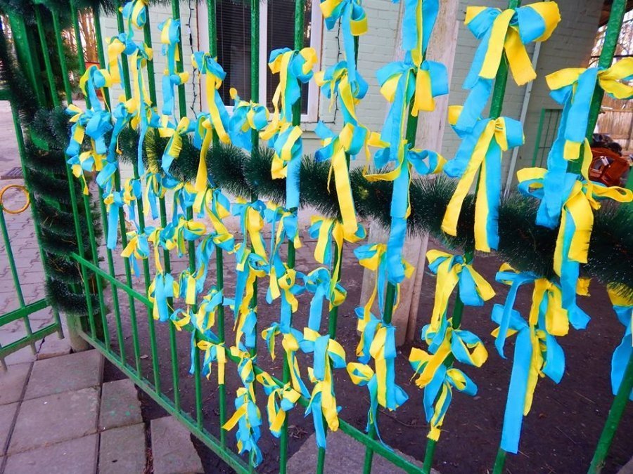 "Ці синьо-жовті стрічки у формі серця вивісили на вхідних воротах зоопарку", - йдеться в повідомленні, опублікованій на сторінці звіринцю в Facebook.
