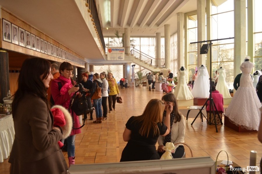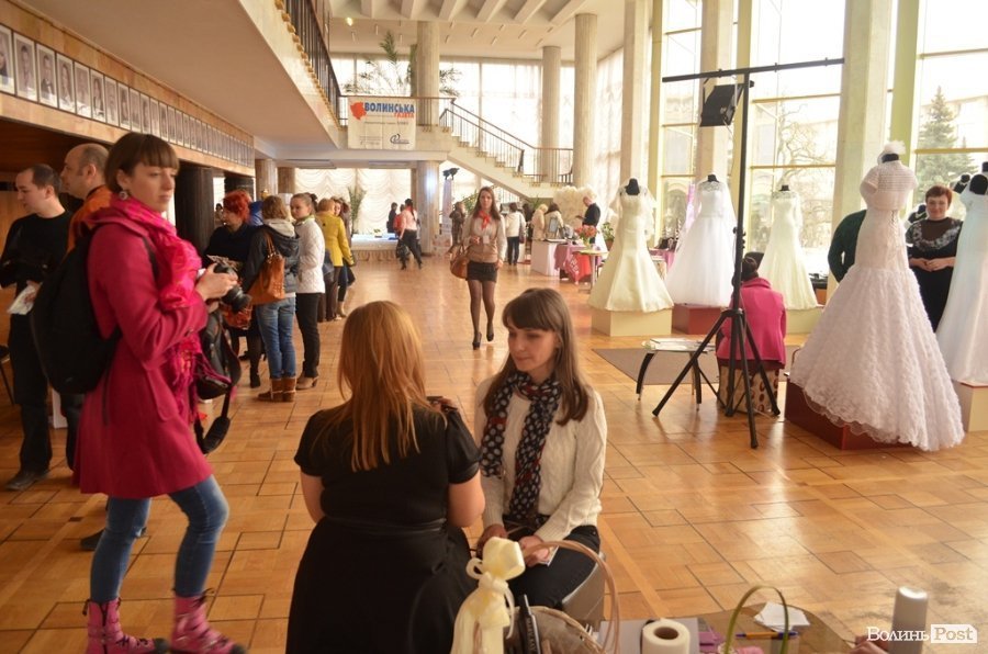 Кількадесят людей прийшло у хол Волинського облмуздрамтеатру імені Тараса Шевченка подивитися на весільні сукні, аксесуари, спробувати на собі професійний макіяж та навчитися планувати весілля.